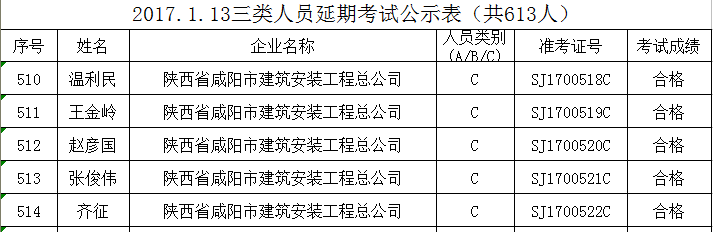 三、請各企業(yè)及個人將公布的姓名及所在單位名稱進行核對,聯(lián)系電話:029-87297249。